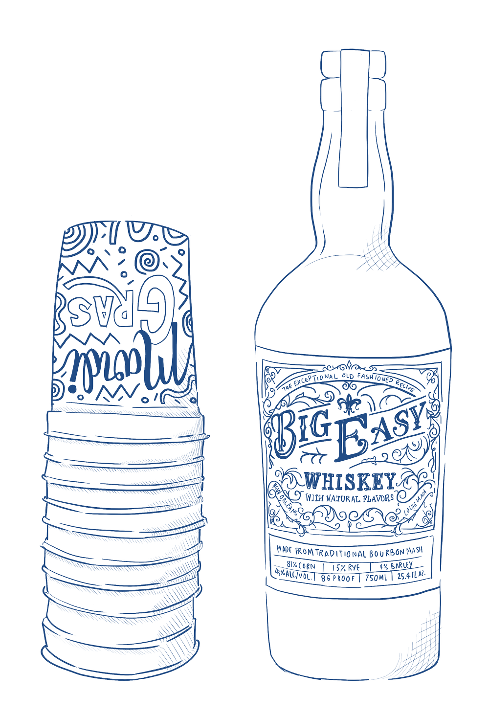 While at the Larkin Collective, Blair Daspit and I created a brand identity for Big Easy Whiskey. They wanted an approach that felt cheeky yet classy, so we incorporated playful New Orleans nods and bright colors to build a brand that says “take it easy.”