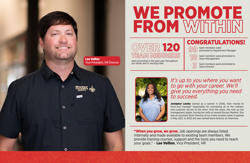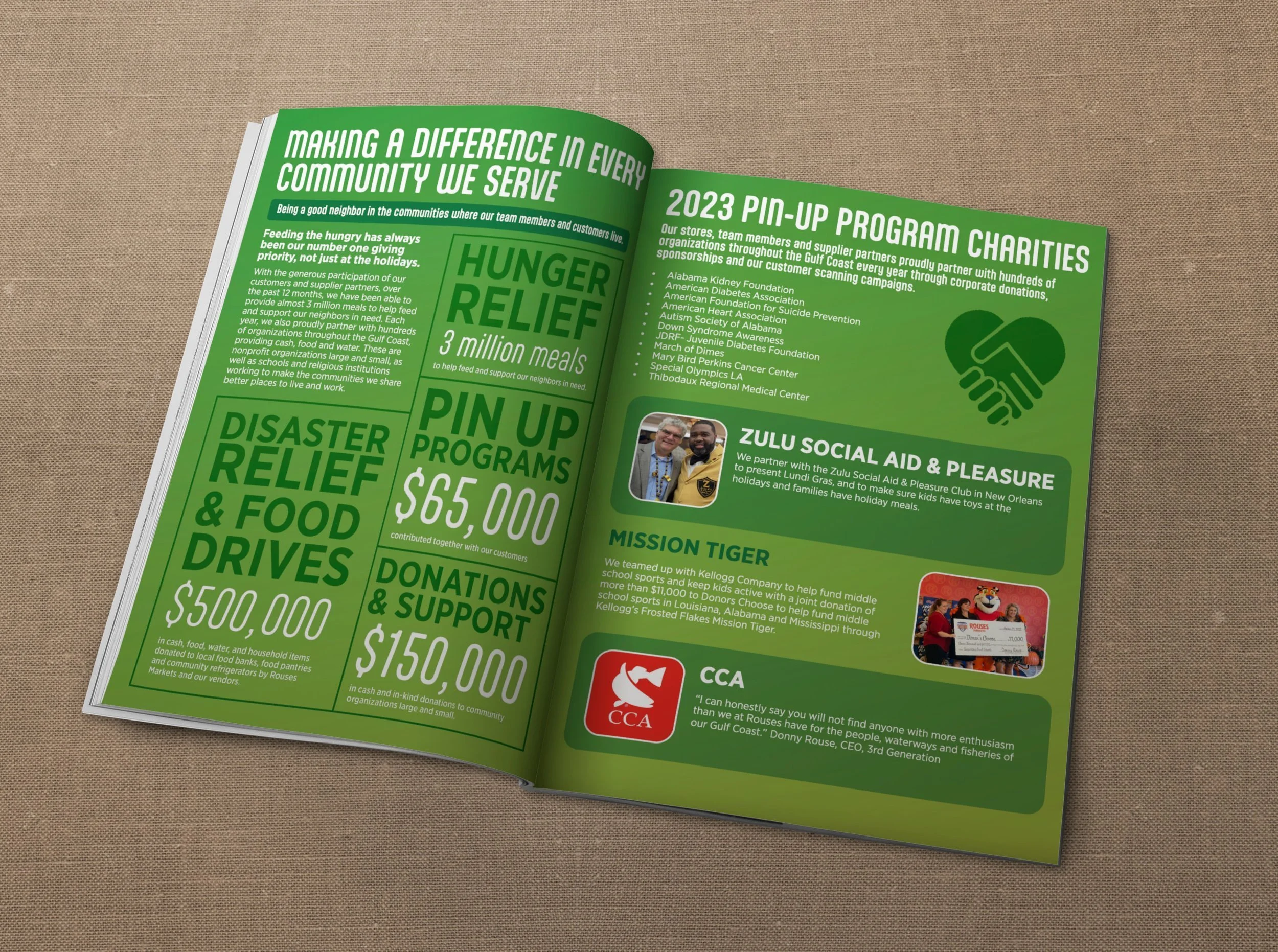 I created the first-ever employee magazine for Rouses Markets, which included information for employees at all levels in the company, and celebrated employee anniversaries, retirements, and achievements.