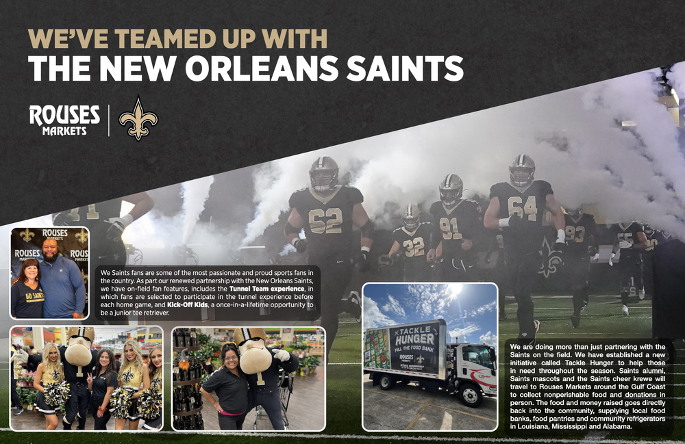 From 2022 to 2025, I have worked with Rouses Markets, first as a design intern and later as a freelance designer. During this time, she developed engaging, culturally resonant content across print and digital platforms, supported vendor campaigns for brands like Coca-Cola, Community Coffee, Zapp’s, and the New Orleans Saints, and designed the company’s first-ever internal employee magazine. She also helped coordinate and execute social media efforts to strengthen brand engagement across the Gulf Coast.