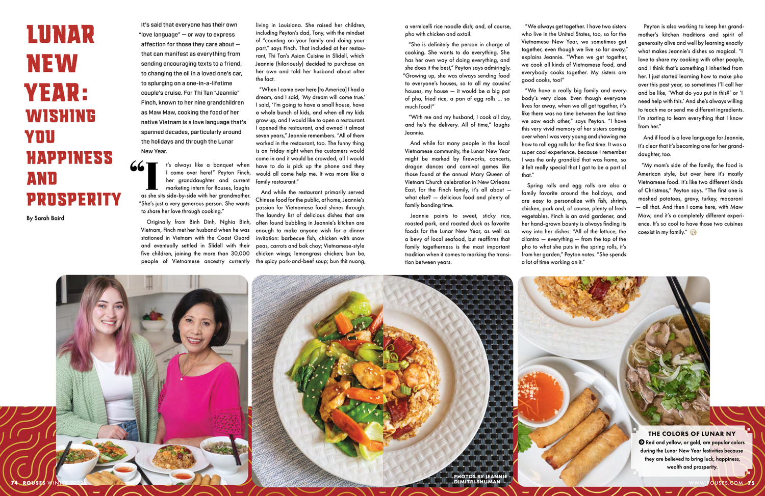 I concepted and coordinated the Lunar New Year feature in the 2022 Holiday Issue of Rouses Magazine, which featured my grandmother and I discussing our holiday traditions and the unity that food brings to family. It was special to have three generations–myself, my aunt, and my grandmother–working on the same project.