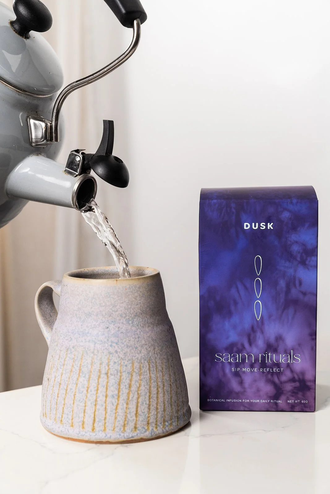 Saam Rituals is a wellness brand with the goal of reinforcing mindfulness through routine. With Saam’s Dusk subscription, customers receive monthly boxes of herbal tea paired with evening rituals of meditation, yoga, and journaling.